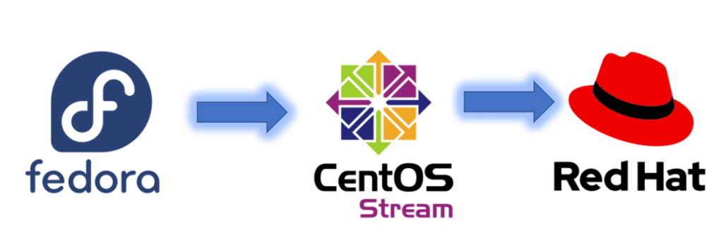 Fedora es el campo de innovación donde van todas las características nuevas que tienen que ser probadas. Cuando consideran que la madurez de los componentes software es suficiente para un mercado comercial, cogen estos paquetes o características y las pasan a Red Hat Enterprise Linux (RHEL) y CentOS Stream.