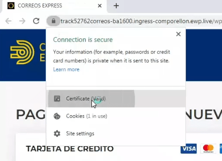 En segundo lugar, observamos el enlace y el certificado de la página.