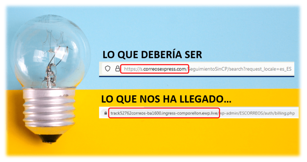 No obstante, el enlace es muy sospechoso. Si nos fijamos bien, vemos que no procede de una web de la empresa de paquetería. El enlace es de una página totalmente distinta. Está claro que la página que estamos viendo no pertenece a la empresa de paquetería.