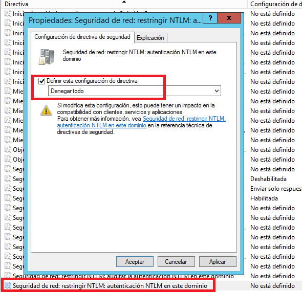Antes de dar el paso he de advertirte que no todas las infraestructuras soportan quitar la autenticación por NTLM. Si tu organización tiene máquinas muy antiguas, como por ejemplo un ordenador con Windows 98, has de saber que la máquina ya no podrá volver a conectar con el dominio ni con los recursos compartidos de tu red.