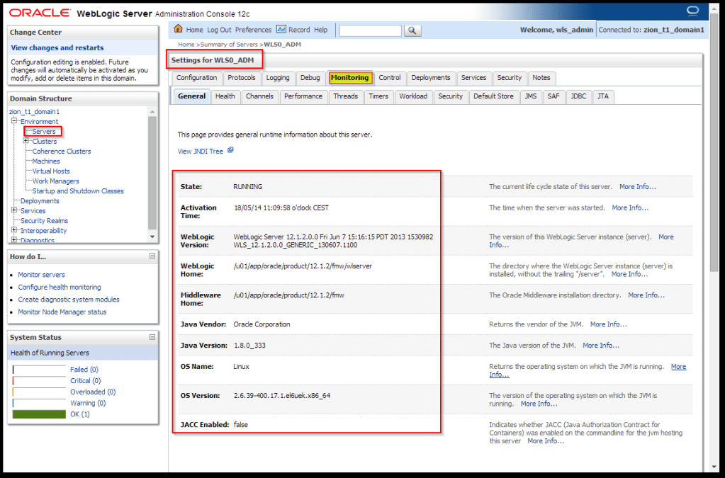 - Cuando hayas acabado inicia de nuevo los servicios y comprueba desde la consola web de WebLogic que tus instancias ya se encuentran en la última versión de Java.